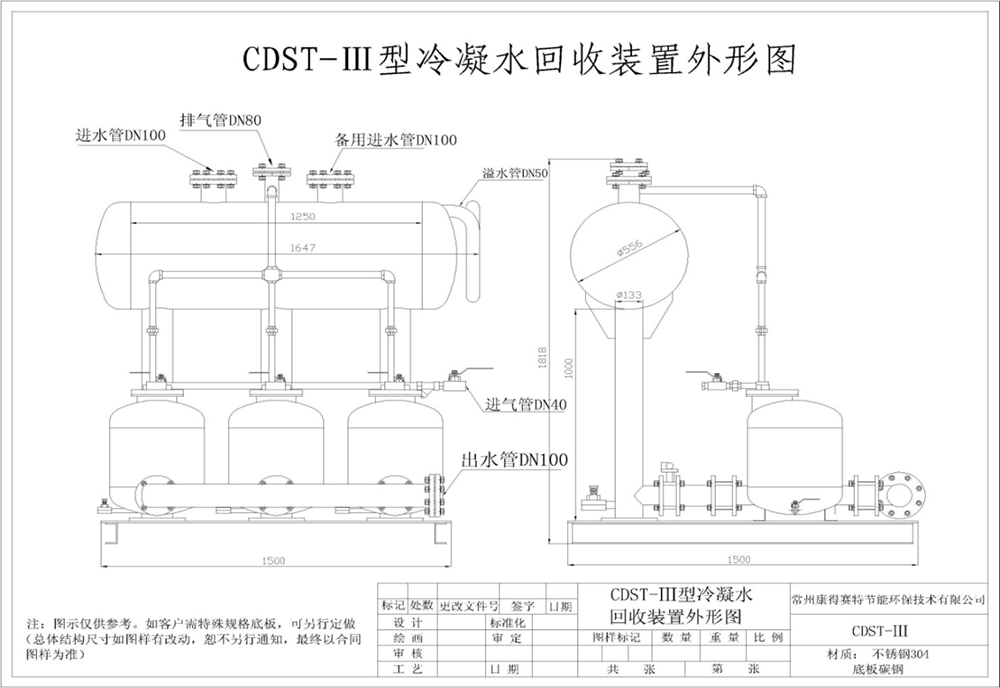 CDST-Ⅲ型冷凝水氣動回收組合泵裝置(除底板)均為不銹鋼304制作,包括內(nèi)部機(jī)構(gòu),堅(jiān)固防蝕。